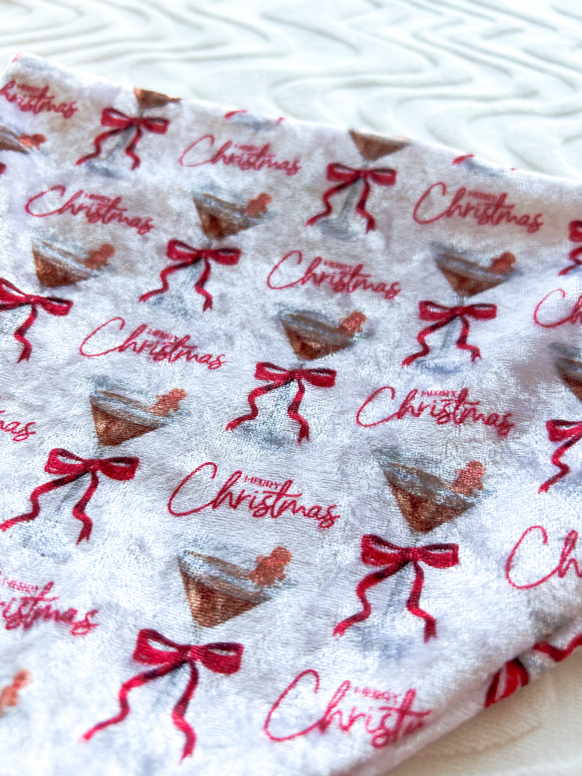 This bandana is made of a crushed velvet fabric that lets the espresso martinis shine! Pair with our Holiday Spirits crewneck inspired by a certain pop star :)